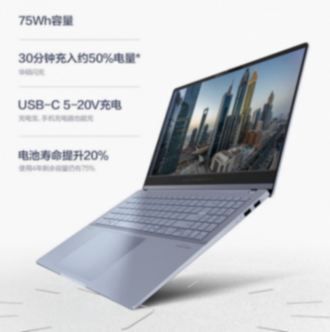 作為15.6英寸的大屏輕薄本,無畏Pro15 2024整機輕約1.5kg、薄至13.9mm,輕量化設計相比部分14英寸輕薄本都毫不遜色,移動辦公或通勤攜帶更加輕松。金屬外殼表面經過磨砂工藝處理帶來細膩觸感,A面LOGO改為亮銀色鉆切工藝,更顯簡潔時尚。內置75Wh大容量電池,支持華碩閃充技術,30分鐘可充入約50%的電量,還支持5-20V寬幅充電,出門在外可以直接使用充電寶、手機充電器進行供電,解決電量困擾。
