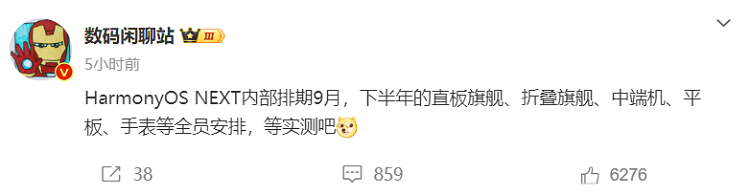 近日,數碼博主@數碼閑聊站帶來了最新的爆料消息,宣稱HarmonyOS NEXT在華為內部的排期是9月份,相比之前的年底上線的時間,要提前不少,也就是說最快我們將會在秋天,就可以看到HarmonyOS NEXT的正式商用。