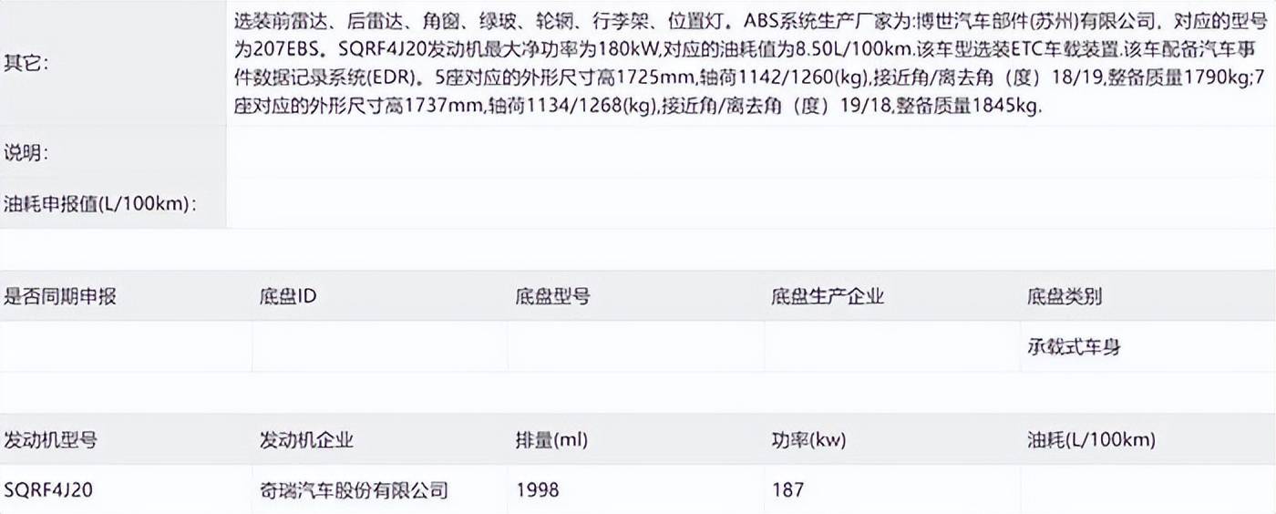 動力方面,根據申報信息,奇瑞瑞虎8L將會搭載的是2.0T渦輪增壓發動機,最大功率187千瓦,傳動方面新車有望匹配的是7擋濕式雙離合。