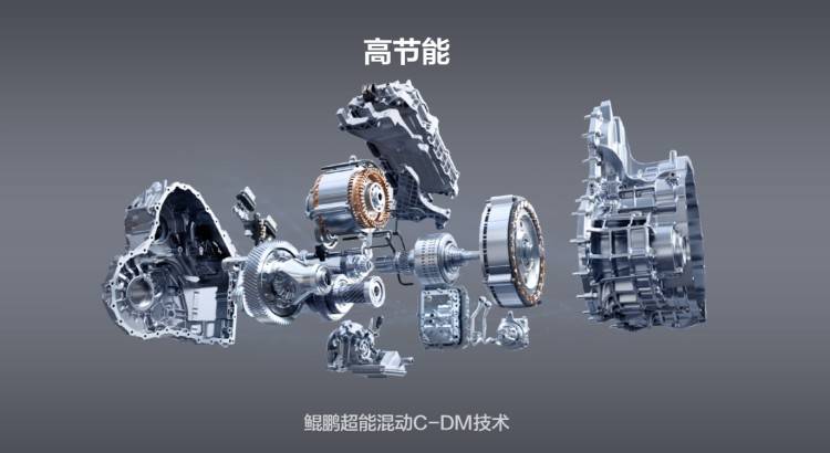 動力方面,這臺車也搭載的奇瑞汽車專門為混動車開發的第五代1.5TGDI發動機,代號H4J15,最大功率115kW,最大扭矩220Nm,熱效率44.5%,比同行大多數混動專用的自吸發動機還高。不過在電驅單元,該車并沒有使用奇瑞的鯤鵬超能混動系統,而是常州坤泰開發的兩擋DHT方案(KTH230),其雙電機采用雙軸P2+P3構型,發動機輸出端比上面的風云T9多了兩個物理擋位調節。