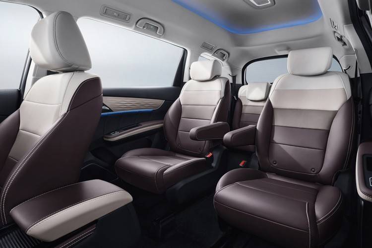宋MAX DM-i也是在燃油車的基礎上進行電氣化改造而來,外觀都是品牌標志性的“龍顏美學”,長寬高分別為4710/1810/1690mm,軸距2785mm,有6座和7座兩種布局,并且還提供高頂版本,搭配獨立座椅、環境氛圍燈,更顯高端商務氣質。