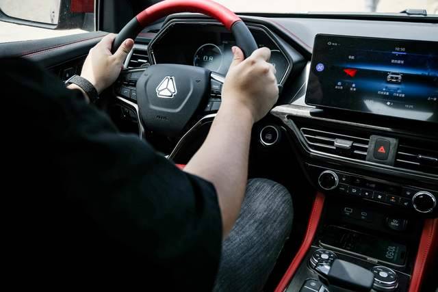 而到了砂石路快速行進過程中,能夠感受到8AT變速箱換擋邏輯進行了優化處理,平順性值得點贊,沒有了刻板印象中國產8AT低檔位換擋的突兀感。再加上越野路況時配合使用電子助力轉向,手感輕盈的方向盤,在一定程度上兼顧了操控性與穩定性。