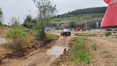 在泥濘路段行駛時,雖然試駕前我們就將其ESP系統關閉,但也不必擔心車輪打滑,因為電子限滑器會及時介入。直觀表現在每當輪胎打滑車身出現偏移時,動力都會被分配到其他輪胎,基本不會將動力浪費在空轉的輪胎之上。