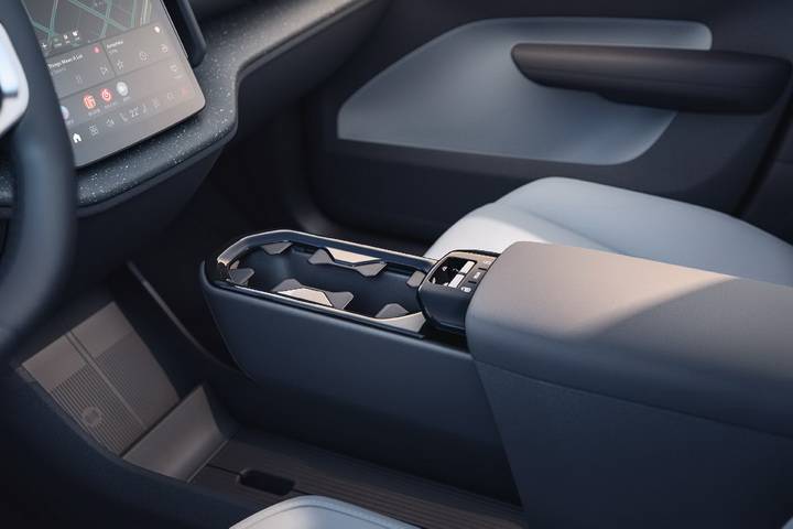沃爾沃EX30的內飾設計同樣有著非常明顯的新能源汽車風格,除了一塊豎狀中控大屏之外,基本上看不到物理按鍵,同時,空調出風口也采用了接近隱藏式的豎狀造型。值得肯定的是,新車的內部用料依然以環保健康可回收材質為主,大量的軟質材料和儲物空間也保證了車內的舒適度和實用性。