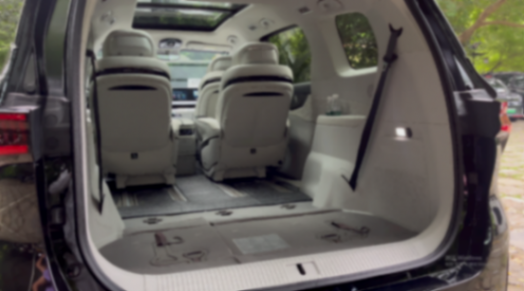 得益于超過3米的軸距,以及1020mm的二排座椅滑軌,讓星海V9的第三排可以擁有非常寬敞的腿部空間,經過實測,在滿足二排空間的前提下,我坐進第三排,腿部大約還有兩拳多的余量,另外,三排的座椅靠背還能夠支持多角度的調節,即便是大高個又或是體型較胖的朋友,都能找到相對舒適的坐姿,而且像空調出風口、閱讀燈、杯架、充電接口一應俱全,不會因為是第三排而被縮減,長途乘坐也不會感到憋屈。