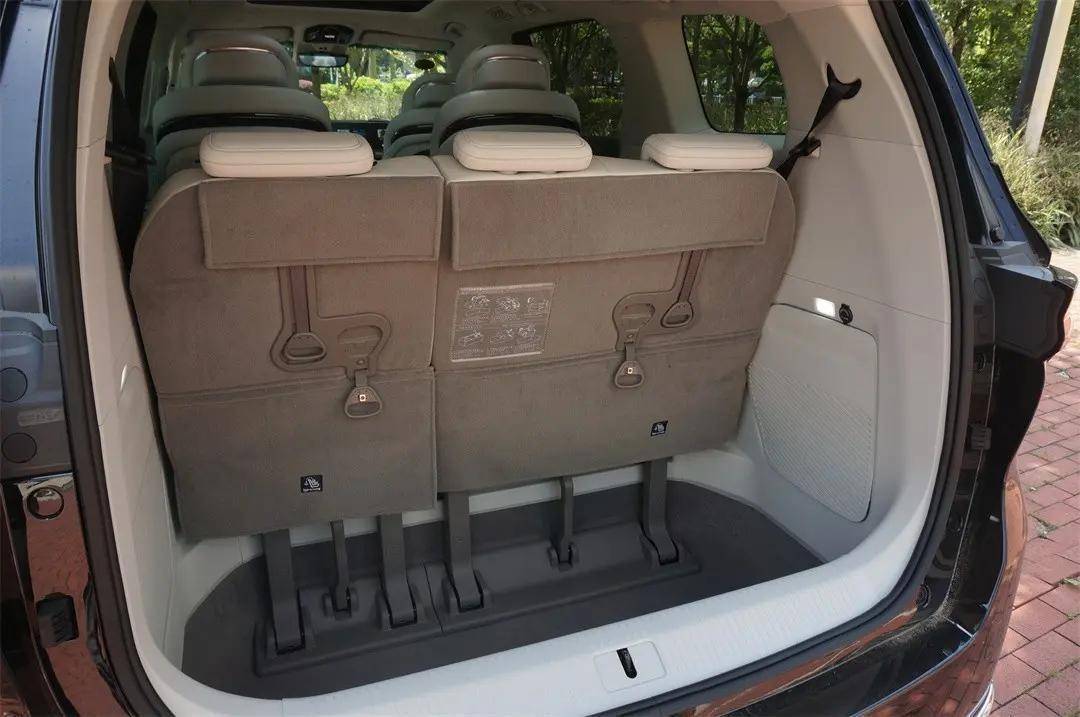 在正常7座狀態下,得益于下沉式的設計,讓星海V9擁有了593L的后備廂空間,如果你覺得還不夠,那行,和賽那一樣,第三排也可以進行折疊收納,從而形成幾乎純平的轉載空間,后備廂的容積則來到了2792L,比GL8還要大,如果你覺得還不夠,那你就去買大巴吧。