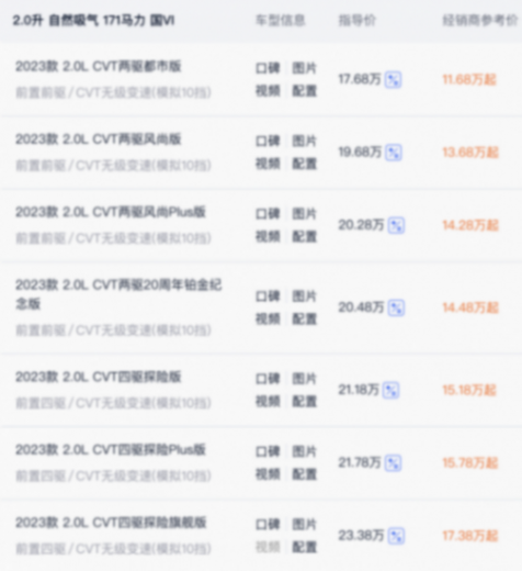 比如這款RAV4榮放,這款車可以說是豐田在國內最具有“功勛”意義的車型,僅次于卡羅拉。這款車在的廠商指導價為17.68-26.38萬元,目前在部分城市,有6萬元左右的優惠,優惠后的起售價來到了11.68萬元左右,頂配車型價格也剛剛跨過20萬元,價格優惠幅度還是相當大的。
