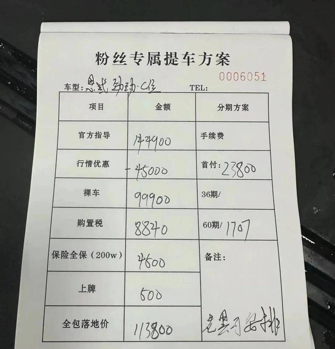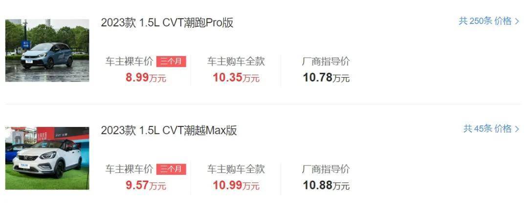 以最低配的2023款 CVT勁勢版(指導價14.19萬元)為例,該配置優惠后的裸車價僅需9萬多,如果是按揭購車,落地價甚至僅需10.8萬元。