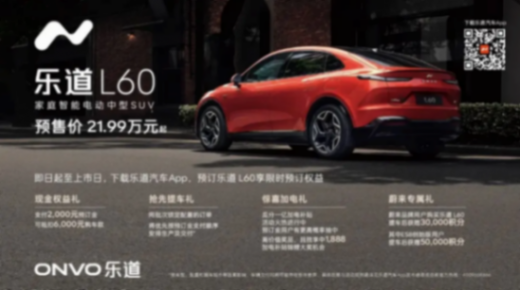2024年5月15日國際家庭日,蔚來公司全新品牌“ONVO樂道”在上海西岸穹頂藝術(shù)中心正式發(fā)布;樂道汽車首款產(chǎn)品——家庭智能電動中型SUV 樂道L60亮相并開啟預(yù)訂,預(yù)售價21.99萬元起。相較于蔚來品牌最便宜的一款車,價格還要低上7-8萬元。