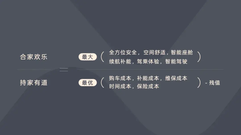 另外,樂道品牌通過對家庭用車真實需求的深刻洞察,提出了家庭用車全新標準——家庭用車價值公式。它的分子描述了體驗價值最大化的包含要素;而它的分母則詳細介紹了擁車成本最優(yōu)化的影響元素。
