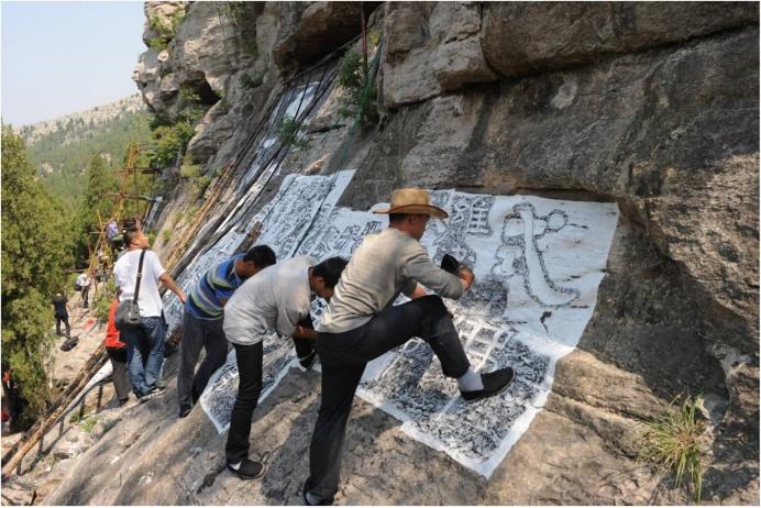 (拓工在洪頂山拓十六佛名。于劍波/圖)