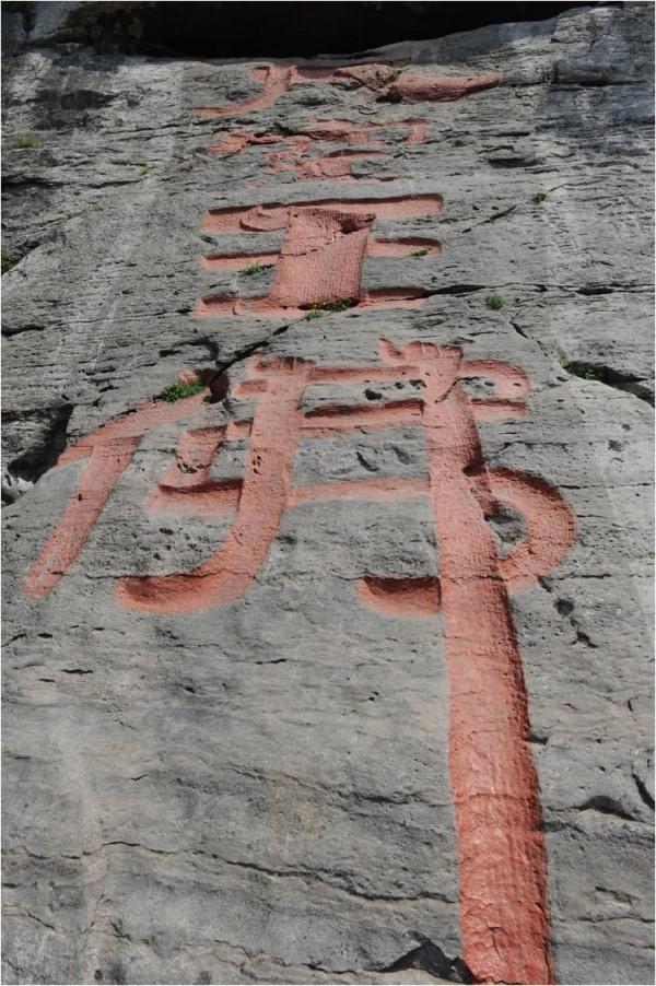 他說,一些地方至今仍然遺有當初的刀刻斧鑿痕跡。以陡峭的懸崖和起伏的石塊為書寫載體,以刀刻斧鑿為呈現方式,天然賦予其作品以沉著厚重的氣質。