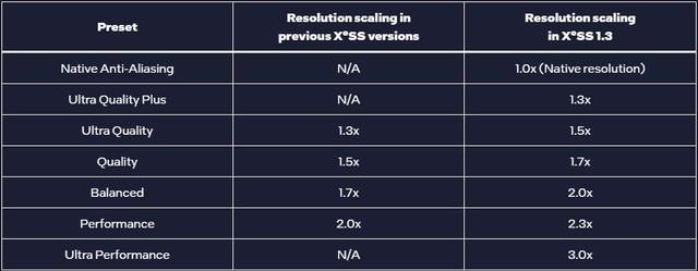 此外,XeSS 1.3提供了更多的設定選項,具體如下: