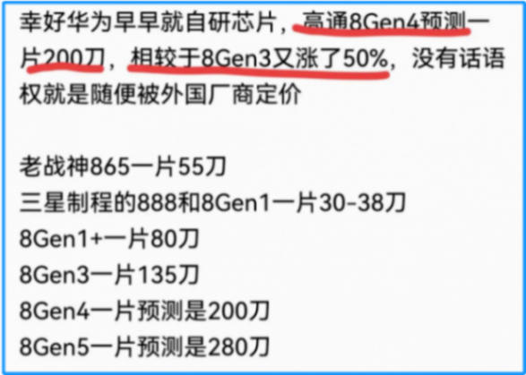 然而,隨著華為被迫徹底放棄安卓,轉而全面擁抱自家鴻蒙系統后,這把"保護傘"蕩然無存。驍龍芯片如今已然無可避免的漲價了,而它的漲價無疑會導致安卓手機整體價格的上漲。曾經那些興高采烈的驍龍首發機型們,恐怕要為驍龍的漲價埋單了。
