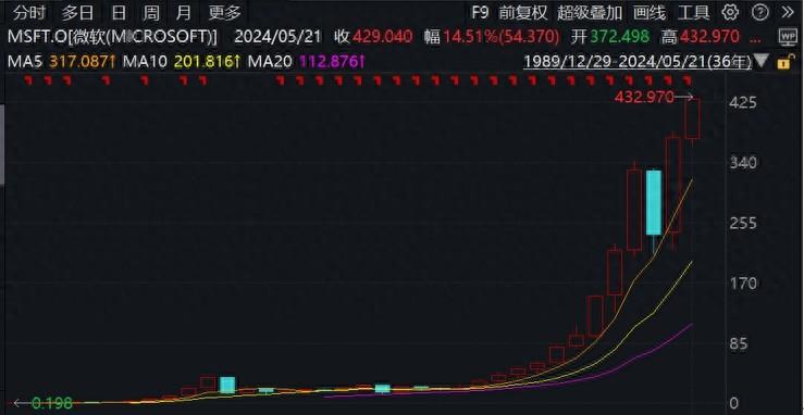 二級市場方面,微軟公司股價延續了此前的長期強勢上漲趨勢,截至昨日收盤429.04美元,盤中更是創下了432.97美元的歷史新高;今年以來微軟股價已累計上漲14.51%。