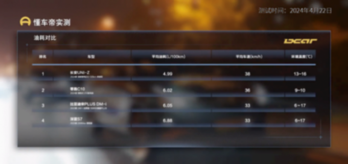 此次實測中,懂車帝也對長安UNI-Z進行了饋電油耗測試。測試結果顯示,長安UNI-Z的饋電綜合油耗全場最低,為4.99升/百公里,一同測試的比亞迪宋PLUS DM-i、零跑C10和深藍S7均超過6升/百公里,和宋PRO DM-i實測的4.76升/百公里的測試成績相比也僅略微高出。從成本來看,懂車帝此次實測的4臺測試車均加注92號汽油,以測試當天北京92號汽油8.25元/升的價格計算,長安UNI-Z每公里燃油成本僅為0.41元,同樣為測試的四臺車中最低。