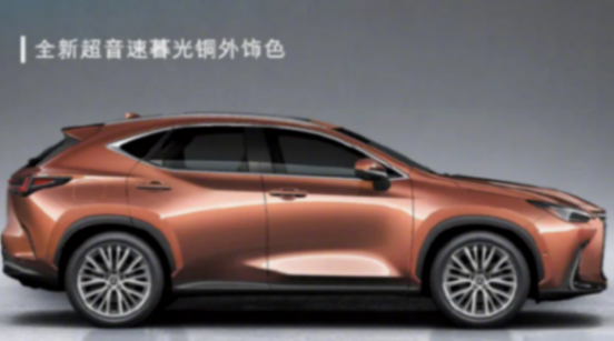 側面來看,同樣搭載了運動套件。值得一提的是,這款雷克薩斯NX不僅擁有白色,銀色,藍色的外觀,還增加了銅色的外觀顏色。