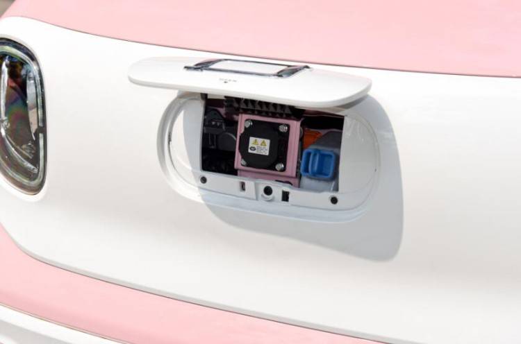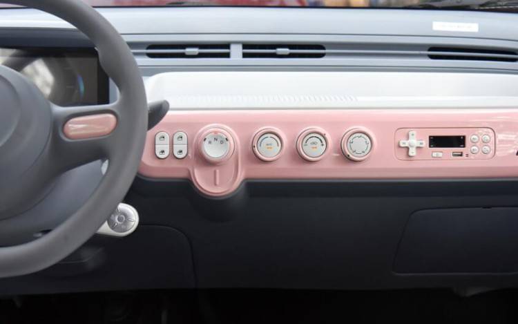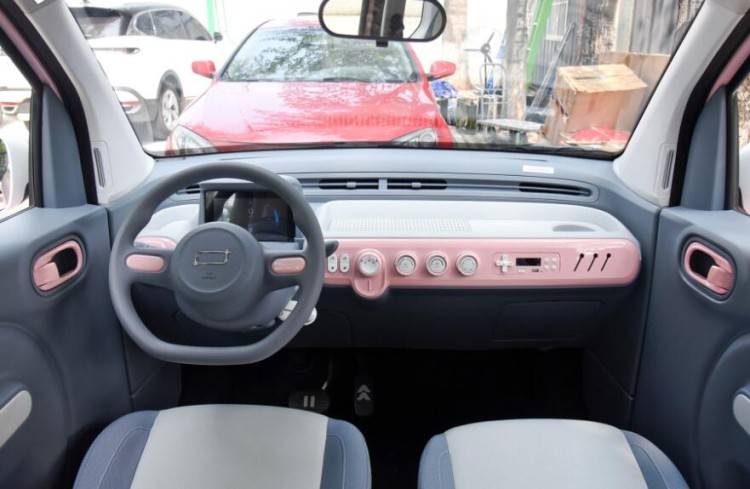 車內(nèi)同樣是可愛路線,粉白配色會很符合年輕女性的喜好。車內(nèi)配備了雙輻式方向盤和液晶儀表,中控臺位置設(shè)有車窗升降按鍵、旋鈕式電子擋桿、以及空調(diào)、收音機(jī)等控制按鈕。