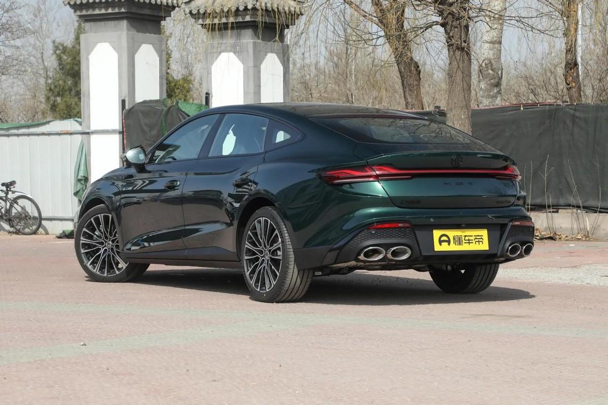 顏值方面,MG7塑造出了低趴、寬體的轎跑姿態,相當個性化。車頭大面積的中網與機蓋上的肌肉線條配合,攻擊性極強;無框車門、多輻式輪圈,以及三段式電動尾翼、雙邊共四出排氣口,進一步增強了車輛的運動屬性,開上街容易獲得高回頭率。