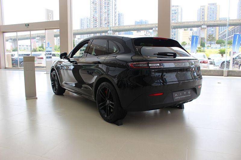 此外,問界新M5還對許多細節都進行了黑化處理,如LOGO、車側攝像頭組件、窗框和輪轂等,帶來了極具運動感的視覺感受。尤其是《車動力》此次拍攝的“鎏金黑”車色,“黑武士”既視感進一步突出了該車的運動感。