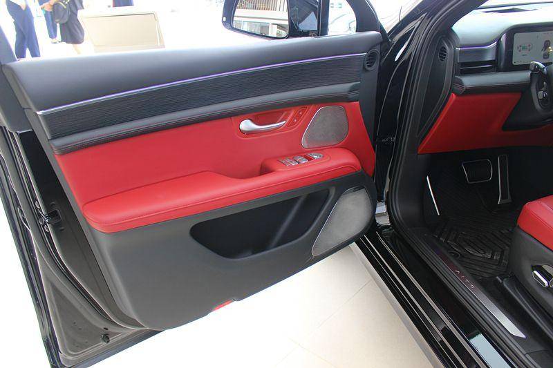 此外,《車動力》本次拍攝的車輛內飾采用了黑色+雀翎紅之雙拼色搭配,中控臺和車門上則大面積采用了軟質皮革材料包裹,且底部帶有縫線,呈現出不錯的精致感與豪華感;同時,中間的木紋飾板、隱藏式出風口搭配貫穿式鍍鉻飾條則增加了視覺層次感。