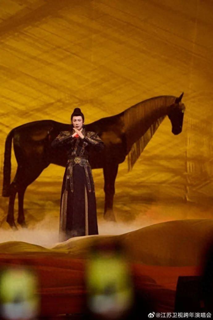2023年12月31日播出的江蘇衛(wèi)視跨年晚會上,劉宇寧再度披上一身甲胄,唱起了《一念關(guān)山》里那首《奉上》。