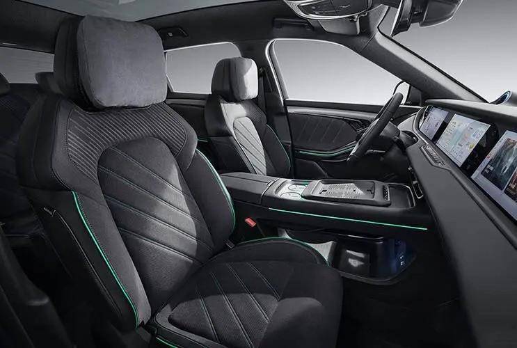 座艙的配置和用料也進行了升級,新車增加了黑+綠的內飾配色可選,而且綠色的元素還在縫線等位置再次呈現,再加上仿生麂皮材質,整個內飾的氛圍無疑更豪華了。嵐圖FREE 318依舊配備了一體式可升降的中控臺,啟動車輛的時候緩緩升起儀式感滿滿,而一體式屏幕讓整個中控臺都是屏幕。