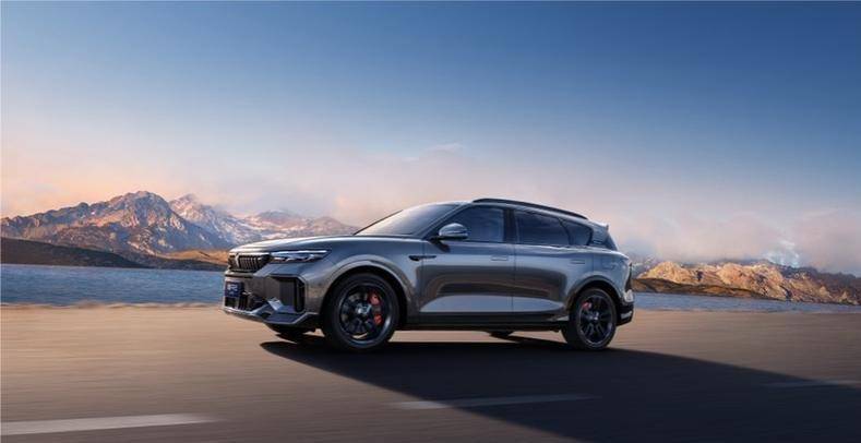 新車可以看作是嵐圖FREE的“增強版”,它的外觀在嵐圖FREE的基礎上加入更多黑化的元素,包括車頭黑色的裝飾、車頂行李架、翼子板裝飾、黑色輪轂等等,營造出了不錯的運動感,而且剎車卡鉗也換裝成了赤焰紅色,搭配鈦晶灰車漆,帶來強烈的視覺反差。