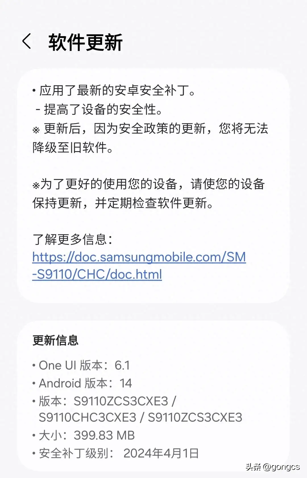 今天我的三星S23有收到軟件更新,更新說明如下: