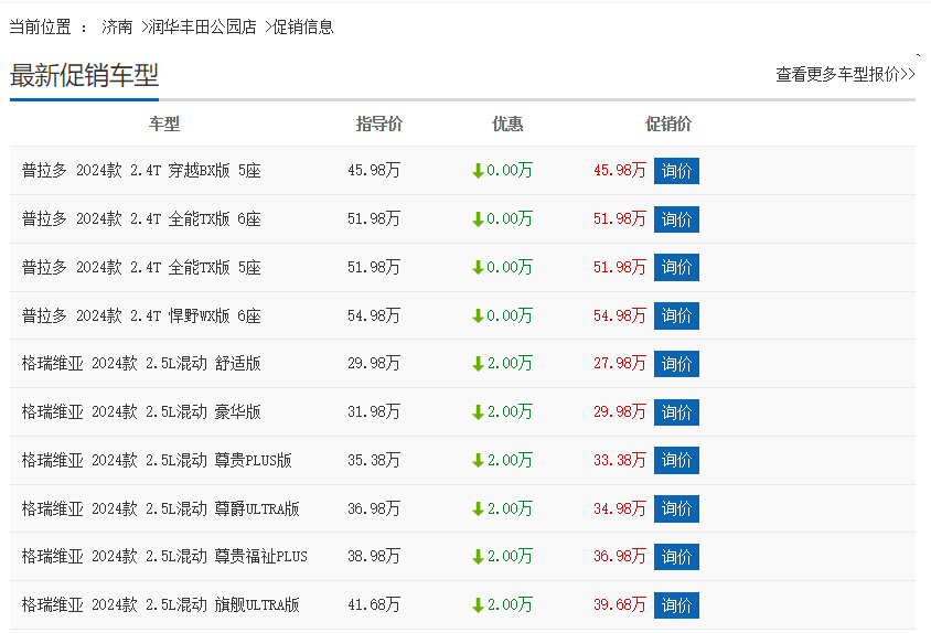 雖然說,凌放車型優惠沒有7萬元那么多,但這只是網上報價,到店后肯定還有一定優惠,與報道中所說的優惠7萬,可能相差并不大。除了新上市的普拉多之外,幾乎每款車型都有一定優惠,少的優惠3萬元,多的高達4萬元,這樣的力度是空前的。