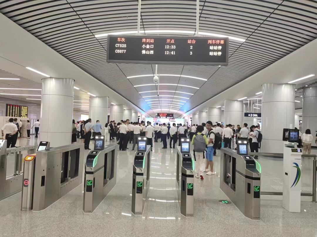 “全線與國鐵、地鐵實現換乘的車站分別有7個。其中,旅客在佛山西站及東莞西站可通過便捷換乘通道換乘國鐵,無需二次安檢,肇慶站、番禺站、鼎湖東站、常平東站和小金口站則需出站換乘國鐵。”廣東城際運營公司相關負責人介紹道。
