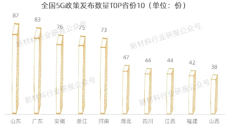 各地圍繞網絡建設、應用創新、產業培育等出臺各項政策舉措積極推動5G發展。截至2023年8月底,各省市共出臺各類5G扶持政策文件980個,其中省級163個,市級455個,縣級362個。其中,廣東、山東、安徽、河南、湖北5個省份均實現政策全覆蓋,浙江、山西、江西等地政策覆蓋率超過90%。