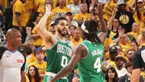但凱爾特人第二節末喘了一口氣:步行者收縮,凱爾特人轉移弱側,三連三分球,加上霍勒迪的抄球喂給塔圖姆,凱爾特人一度追到差9分。
