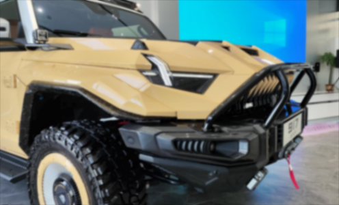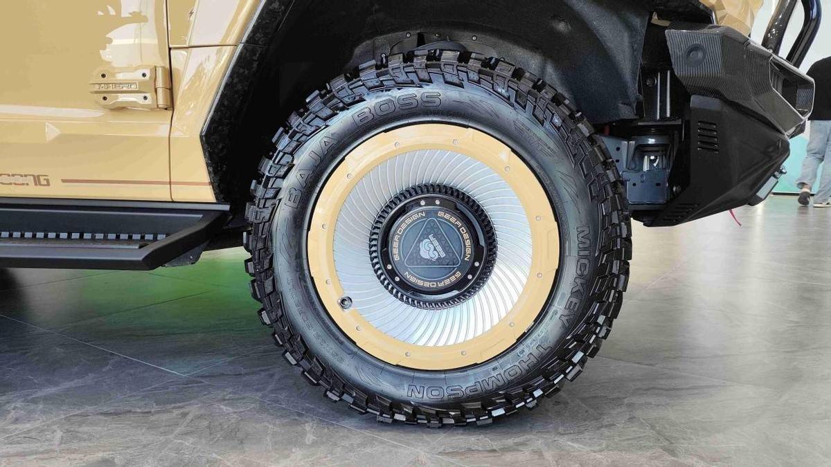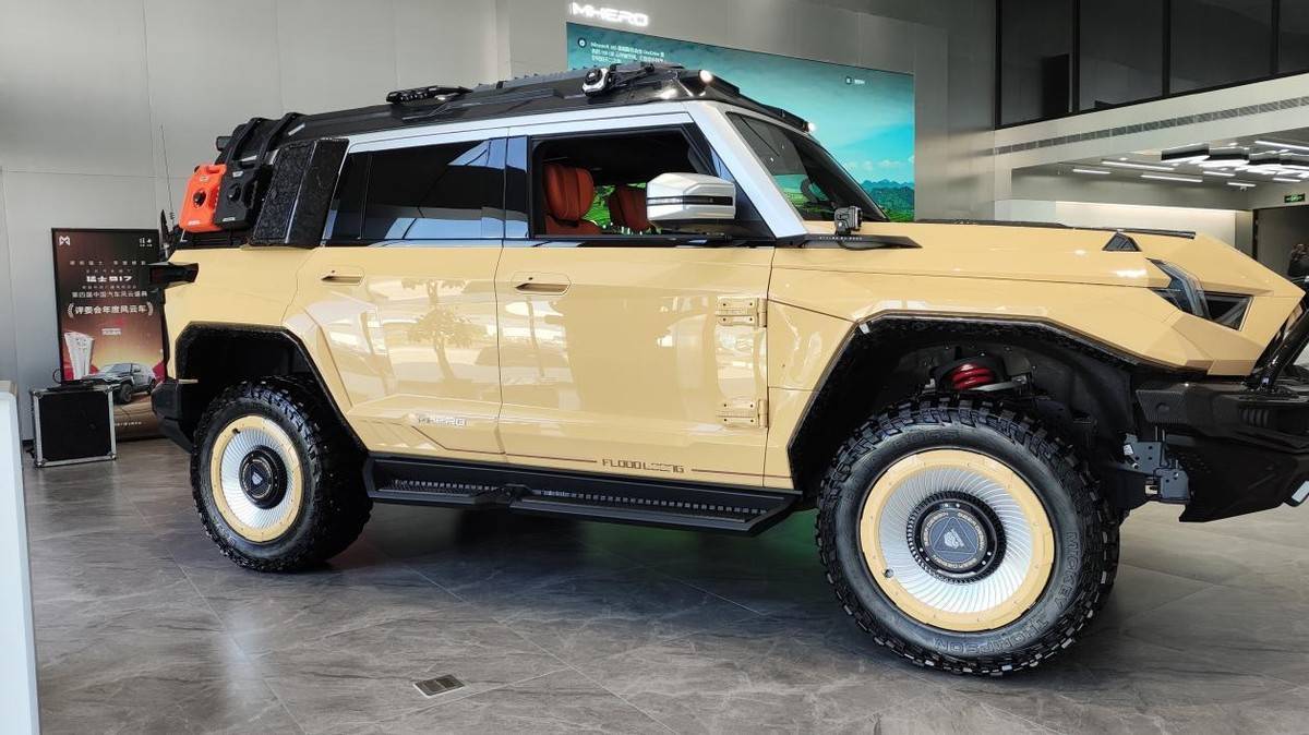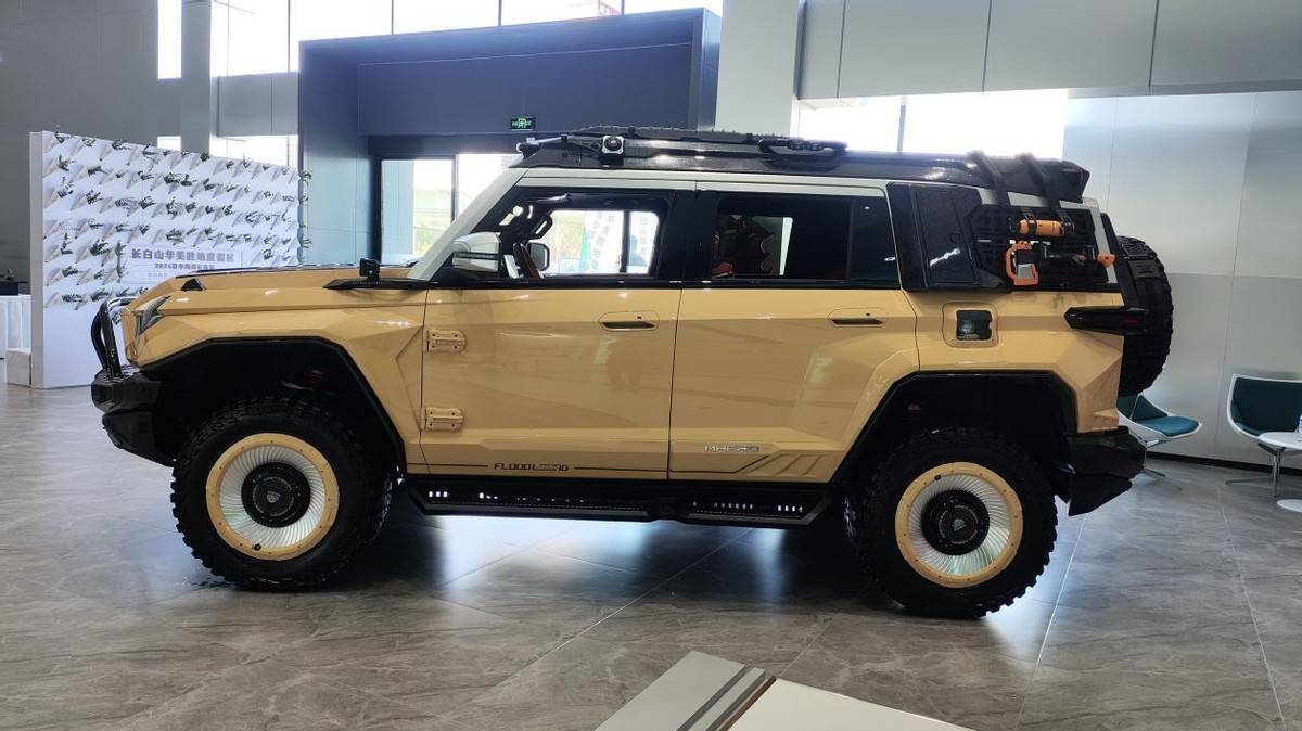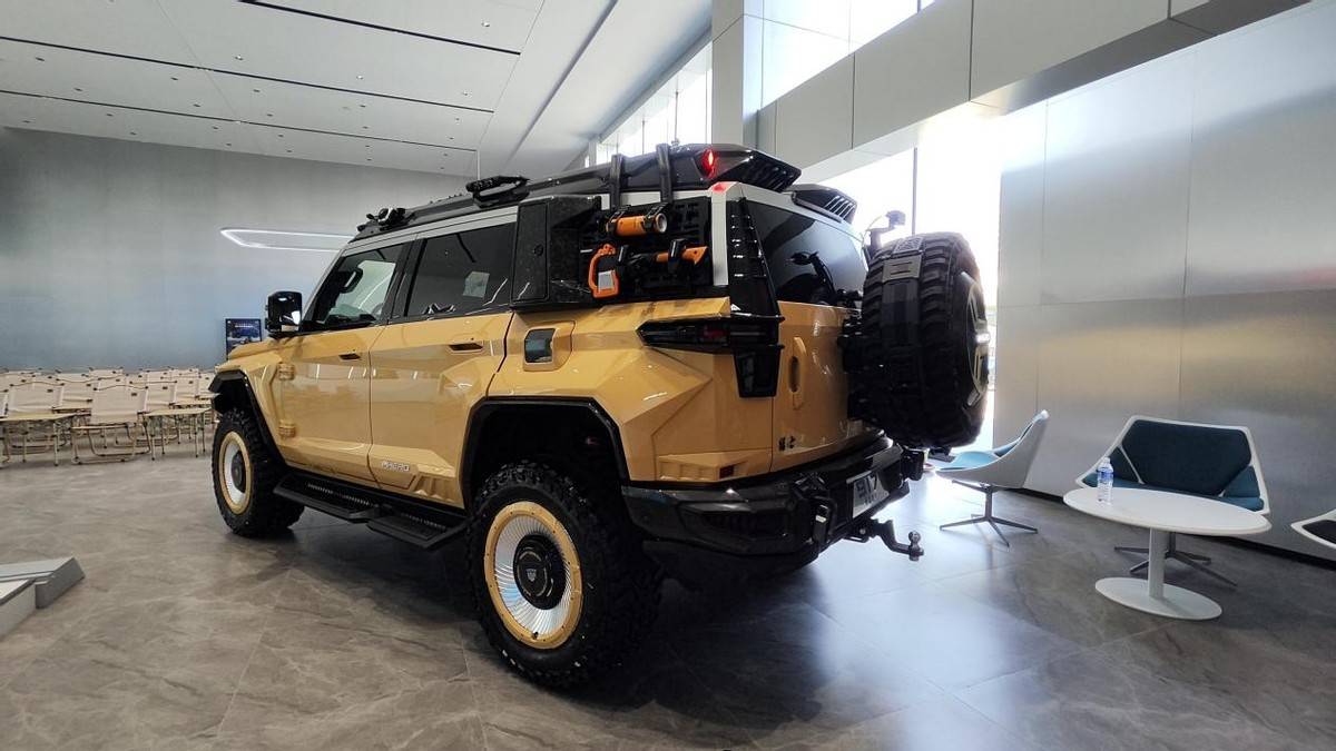 來到車身側面,猛士917蛟龍戰甲的設計同樣引人注目。線條犀利且硬朗,雖然它是一款民用車,但獨特的造型卻讓人不由自主地聯想到軍用機械的硬朗與堅固。新車側面的線條猶如刀鑿斧劈,展現出一種粗獷而不失精致的美感。