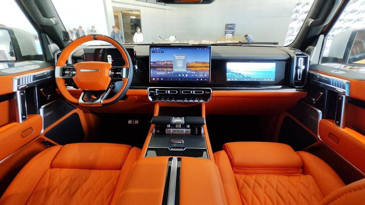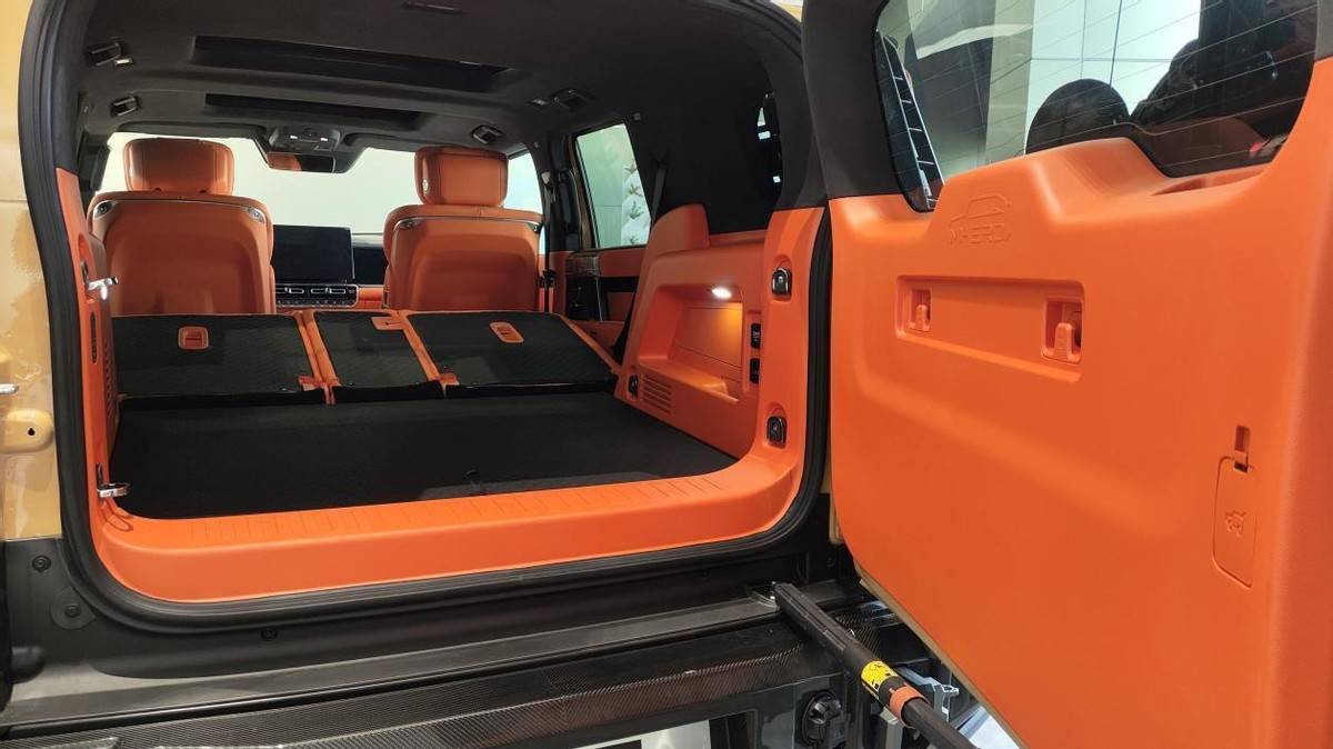 本以為這樣一位“硬漢”的內在也會有一顆硬朗的心,但其實不然,猛士917蛟龍戰甲內飾風格和硬朗的外觀有著很大違和感。實際坐上去,更像是一臺以舒適和豪華為主打的城市SUV中。內飾采用了飽和度極高的橙色系配色,熱烈而鮮明,一坐進車內便能感受到滿滿的激情與活力。