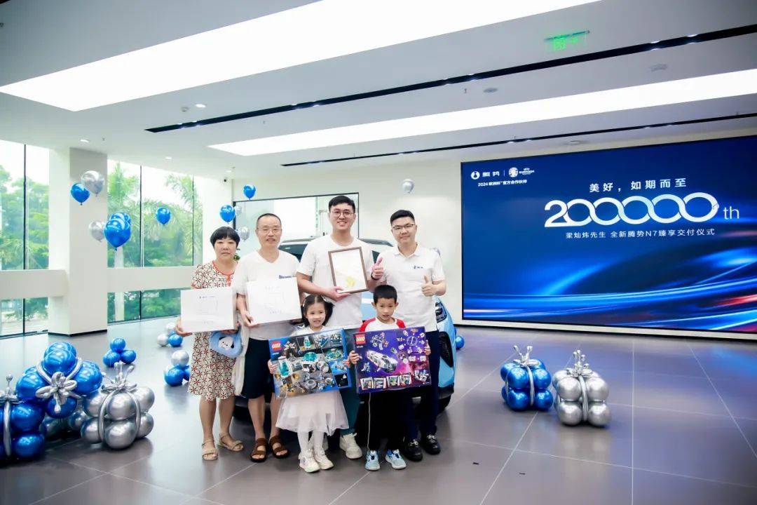 5月25日,騰勢汽車第20萬輛訂單在廣州番禺萬博騰勢MINI中心正式交付。從煥新后的首張訂單到20萬輛訂單交付,僅二年時間,騰勢成為最快達成這一里程碑的新能源豪華汽車品牌,創行業最快交付紀錄。在交付儀式上,騰勢汽車首席共創官趙長江與用戶共同揭幕全新騰勢N7,趙長江說:“車主梁先生是23年騰勢N7置換全新騰勢N7,感謝梁先生這樣的年輕人與年輕家庭對騰勢汽車一如既往的信任與支持。”