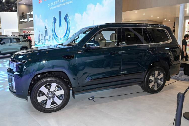 BJ60魔核電驅版的側面依然采用經典的硬派SUV設計,整體線條非常硬朗,力量感十分突出。細節上換裝了全新的輪圈,相比燃油版來說,要顯得更加激進一些。車身尺寸上,BJ60魔核電驅版的長、寬、高分別為5040/1955/1925(mm),軸距為2820mm。