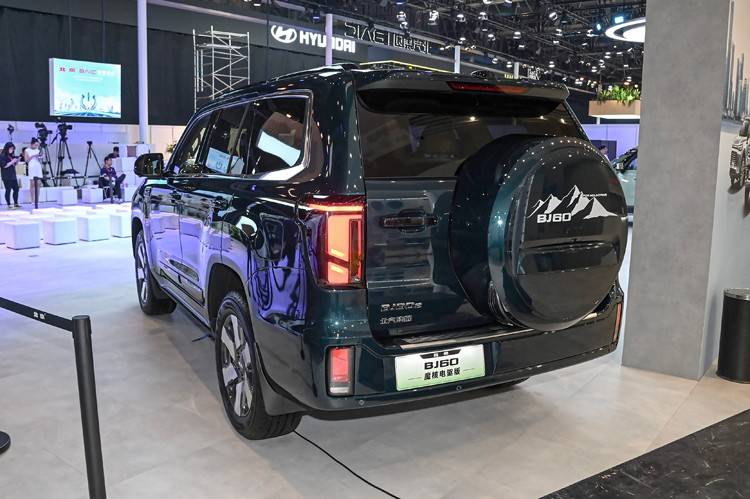 BJ60魔核電驅版的車尾同樣采用了方正的設計,外掛備胎能突顯出新車硬派越野的身份,圓角矩形的設計非常立體,內部燈組以及后霧燈都與燃油版有較為明顯的區別,點亮后的視覺效果也更加出色。尾門采用側開方式,一定程度上方便了后尾門的開啟。