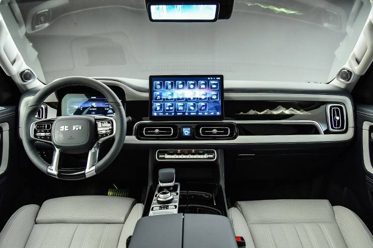 內飾上,BJ60魔核電驅版與燃油版有了很大區別,整體換裝了與全新BJ40類似的設計,最大亮點是中控與副駕雙聯屏來取代燃油版上的懸浮式大屏,換擋方式也變成了旋鈕式,科技感變得更好了。功能上,目前還沒有具體的信息,但可以參考之前燃油版,大屏搭載了與騰訊合作的車機系統,支持整車FOTA升級,語音交互等實用的功能,魔核電驅版的功能配置大概率會比燃油版更好。