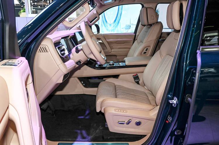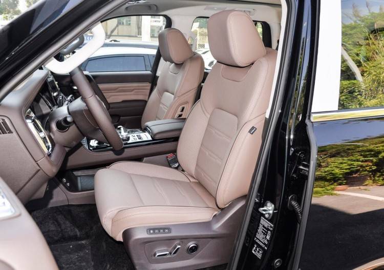 乘坐上,BJ60魔核電驅版配備了淺色的皮質座椅,座椅的樣式與燃油版有很大區別,不過座椅同樣是采用寬大厚實的設計,功能上支持多向電動調節、座椅記憶,通風、加熱等。
