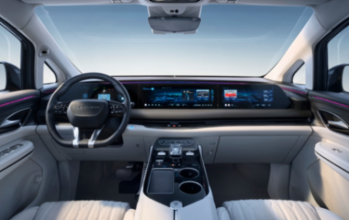 作為一款中大型MPV,星海V9長寬高分別為5251/1920/1820毫米,軸距達到了3018毫米,采用了2+2+3的7座布局,無論是商務接待還是家用都很合適。內飾方面,新車配備了由12.3英寸全液晶儀表+16.2英寸中控屏和12.3副駕娛樂屏組成的一體式大聯屏,搭載騰訊TAI4.0智能車機系統,內置高通驍龍8155芯片,支持四區域語音識別喚醒、手機APP遠程控制以及OTA升級等功能。