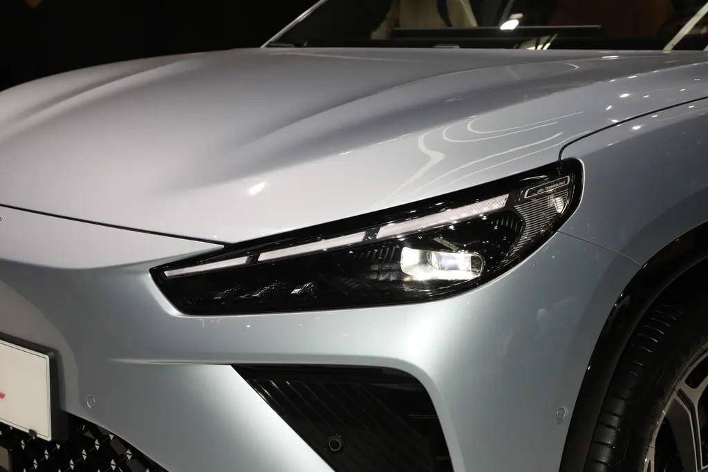 從外觀上來看,哪吒L純電版和增程版是沒有明顯差異的,它的前臉是配備了封閉式的進氣格柵,大燈采用的是狹長犀利的造型,內部是配備了三段式的LED日行燈,顯得十分醒目。它的下包圍是采用了三段式的造型,兩側配備了大尺寸的導流槽,中間的梯形進氣口尺寸也比較大,內部是加入了點陣鍍鉻的設計,整體的辨識度非常高。
