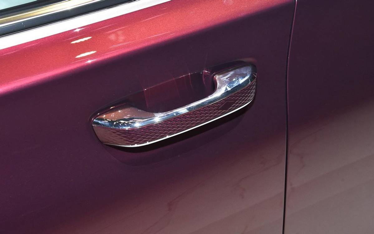 側(cè)面由一條平直的肩線和腰線組成,主要也是突出一種平穩(wěn)氣派的感覺(jué)。門(mén)把手是傳統(tǒng)樣式設(shè)計(jì),不過(guò)把手上面設(shè)計(jì)了精致的網(wǎng)格紋理,以彰顯精致與豪華氣息。