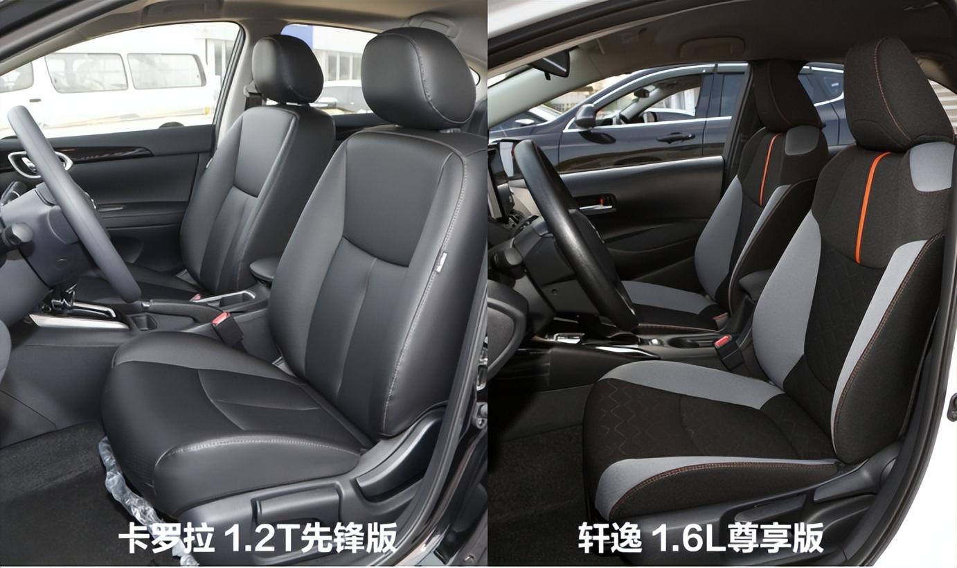 卡羅拉1.2T先鋒版的座椅為織物材質。而軒逸1.6L尊享版使用仿皮材質的人體工學座椅,亮點在于采用航天零重力科技理念打造,在舒適性、支撐性方面表現出色。