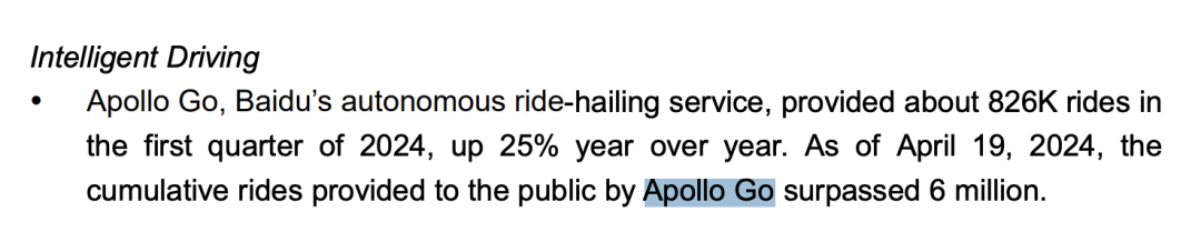 在前不久公布的2024年百度第一季度財(cái)務(wù)數(shù)據(jù)中,旗下蘿卜快跑平臺(tái)累計(jì)訂單已經(jīng)超過了600萬單,本季度訂單量82.6萬單,同比增長了25%。