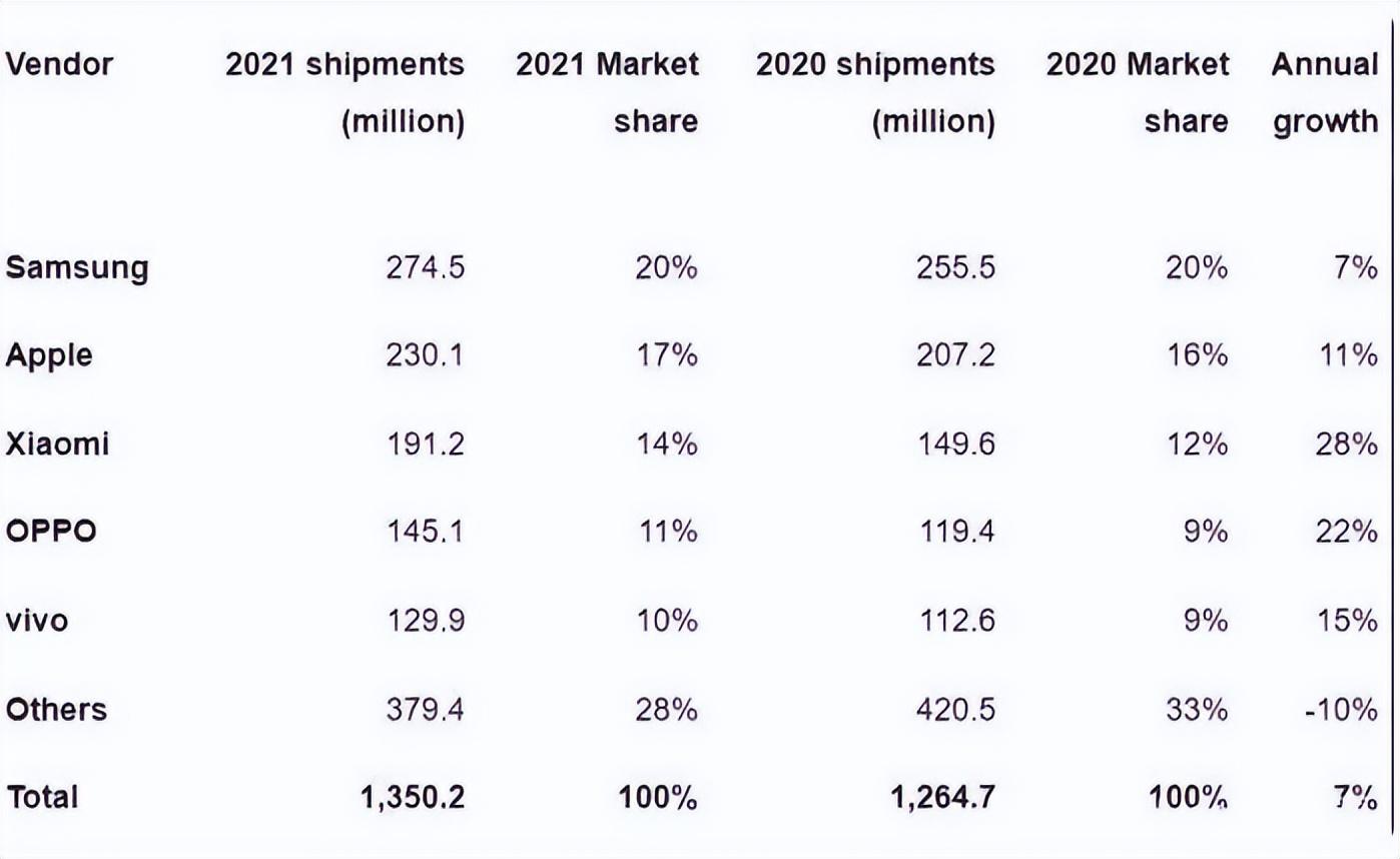 要知道,去年一二季度,OPPO在國內(nèi)市場一度奪得國產(chǎn)手機(jī)第一寶座。時(shí)間線在拉長一些,根據(jù)Canalys的數(shù)據(jù)顯示,OPPO2021年全球出貨量同比增長達(dá)22%,市場份額更是一度達(dá)到11%。