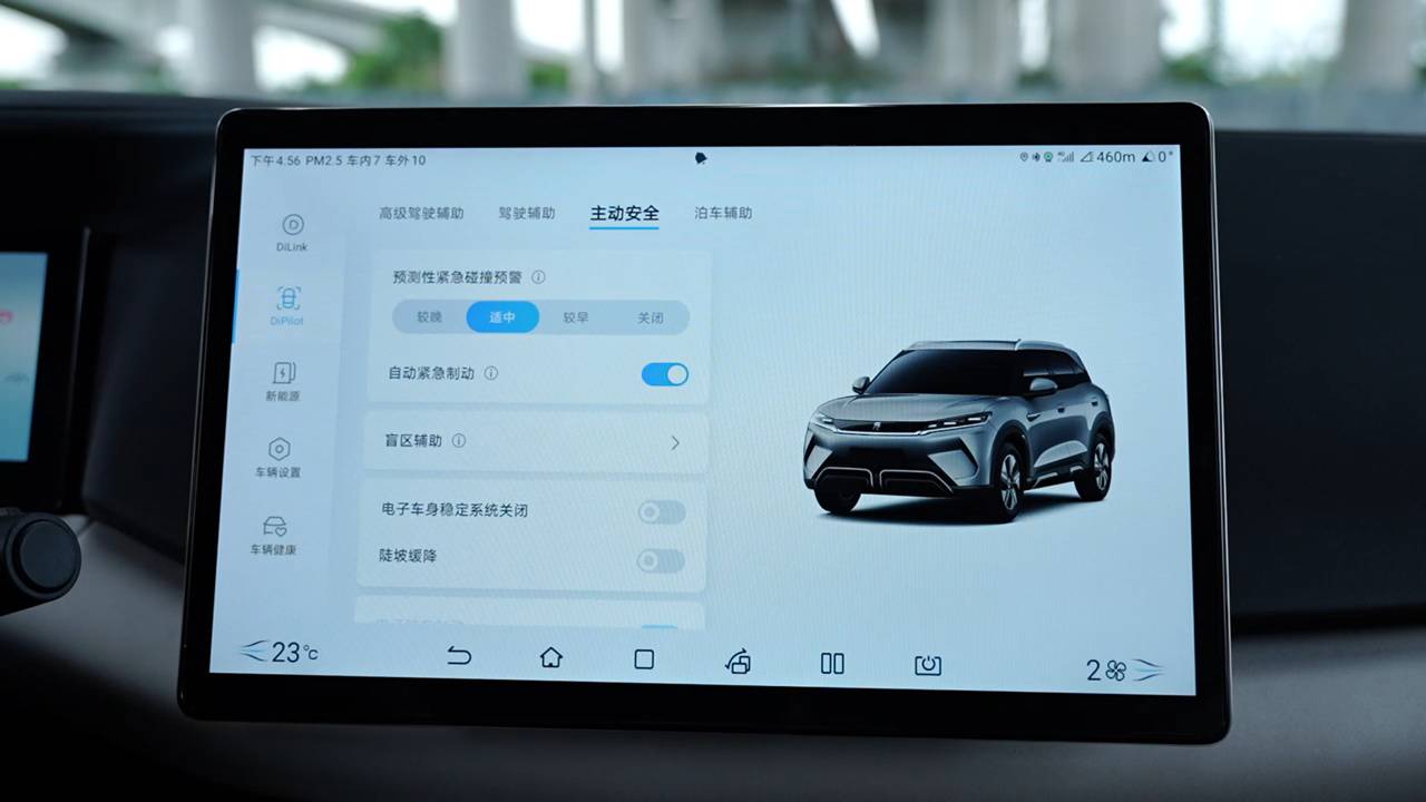 至少元UP的轉彎半徑只有5.25米,比AION Y小了足足25cm,城市駕駛的靈活性更有保障,而且從轉向手力上看,比亞迪的舒適、運動模式區分明顯,尤其運動模式下中心區更穩定,力矩建立的手感也不錯,回正殘留小,開起來的感受比AION Y要更順暢一些。