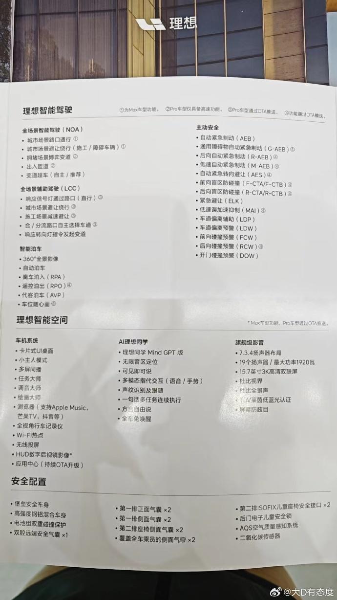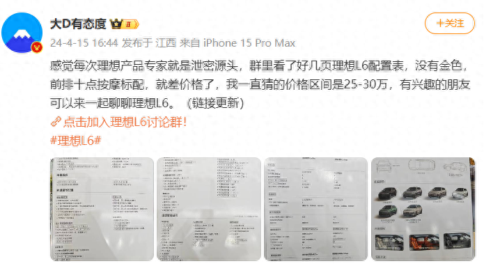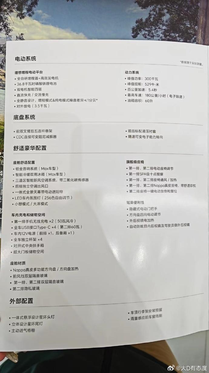 4 月 15 日消息,理想 L6 車型將于 4 月 18 日上市。在此之前,博主 @大 D 有態度 在微博分享了理想 L6 車型的產品頁,只差價格還未公布。