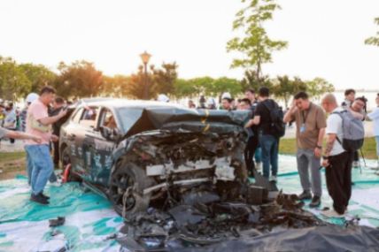 來到車內(nèi),星紀(jì)元ET全系標(biāo)配7安全氣囊,主駕和副駕氣囊都全部正常打開,展開充分,前后排座椅位置也未發(fā)生離位、結(jié)構(gòu)無失效,能夠有效的約束乘員,從而保護(hù)乘員不受傷害。最后星紀(jì)元ET的高壓電系統(tǒng)也開啟了自動斷電,現(xiàn)場工程師通過高壓電的測量設(shè)備,檢測結(jié)果顯示車輛在2ms內(nèi)切斷了高壓電,電池包未起火、未爆炸、未冒煙,電解液也未泄漏,碰撞后電壓值、電能值和絕緣電阻等電安全查考指標(biāo),都滿足法規(guī)要求。通過這些拆車表現(xiàn)來看,星紀(jì)元ET在車身品質(zhì)的打造上,完全繼承了奇瑞的深厚安全功底。