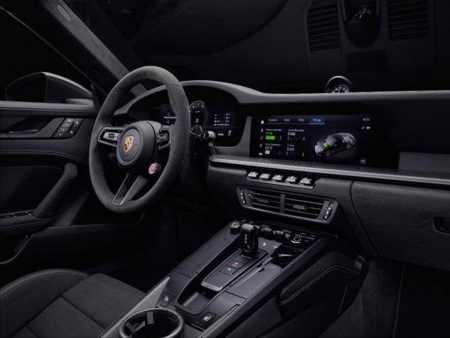 在駕駛艙方面,保時捷將熟悉的 911 設(shè)計基因與現(xiàn)代科技相融合:保時捷駕駛艙體驗 (Porsche Driver Experience) 控制理念注重以駕駛者為中心和直觀快捷的操作?;A(chǔ)控制元件直接布置在方向盤上或方向盤周圍。其中包括標(biāo)配的駕駛模式切換旋鈕、改良的駕駛者輔助控制桿以及 911 車型上首次出現(xiàn)的啟動按鈕,位于方向盤左側(cè)。在新款 911 的中控臺儲物箱內(nèi),配備感應(yīng)充電功能的冷卻式智能手機(jī)儲物箱。